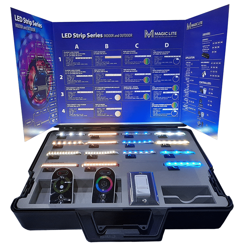 Magic Lite will start by distributing demo cases to its sales agents across the country. More LED Strip Series Tape Light demo cases will be manufactured to support specifiers, distributors, and their Lighting Champions.